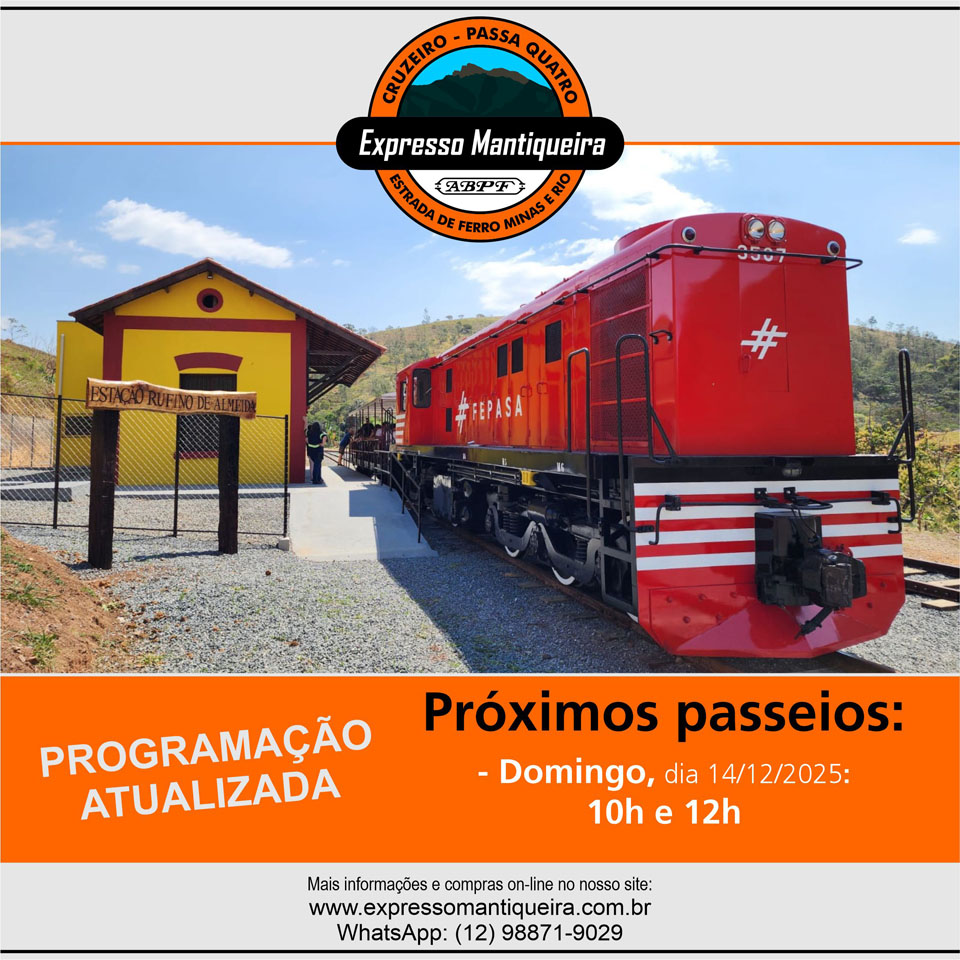 O Expresso Mantiqueira é um trem operado pela Regional Sul de Minas da ABPF na cidade de Cruzeiro – SP. Nessa primeira etapa, o trem parte da estação central de Cruzeiro, KM 0 da ferrovia Minas & Rio, e segue em direção a estação Rufino de Almeida, localizada no KM 6 da ferrovia, no pé da Serra da Mantiqueira, logo após o primeiro túnel da ferrovia, totalizando 12 km de passeio (ida e volta).