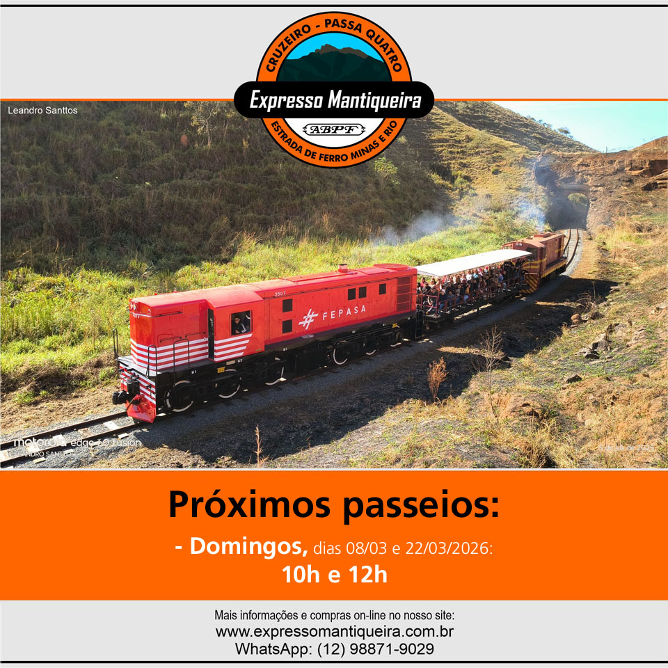 ATENÇÂO! Teremos passeios nos dias 08/03/26 e 22/03/26!!!